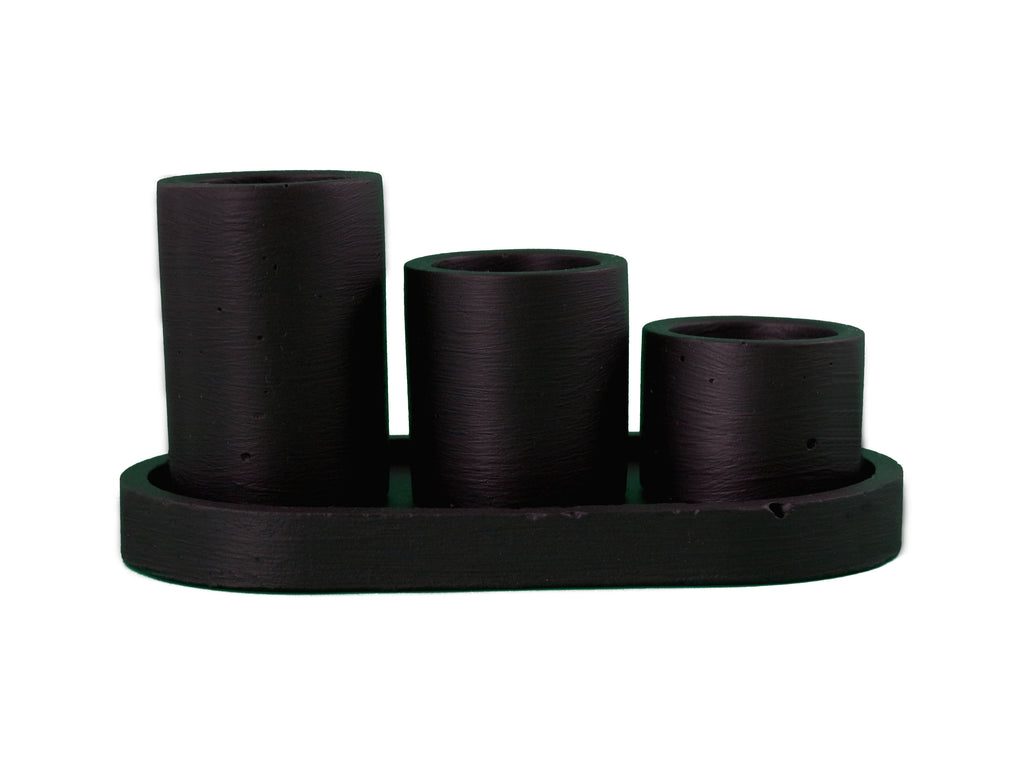 This listing is for: 3pcs Tea light holders and 1pc Tray all Black.