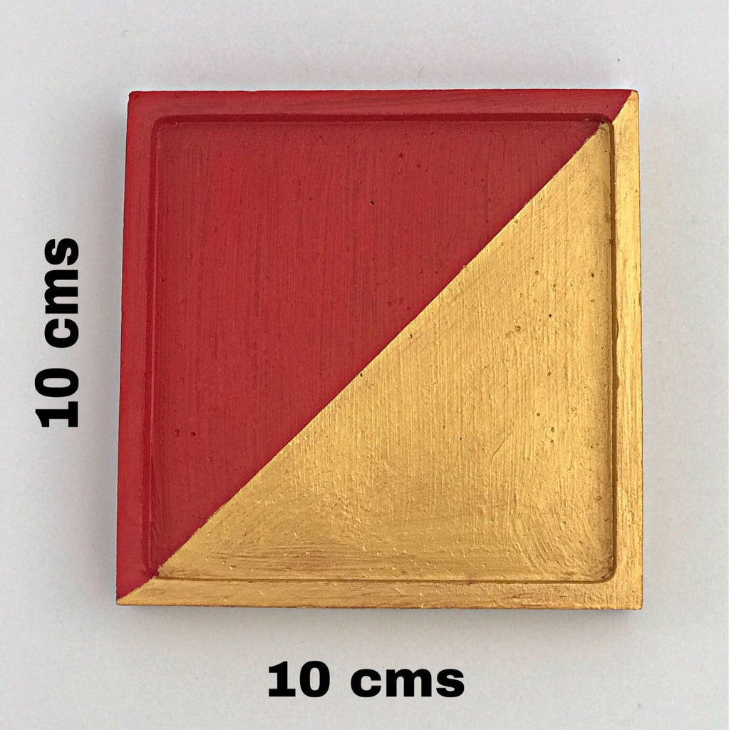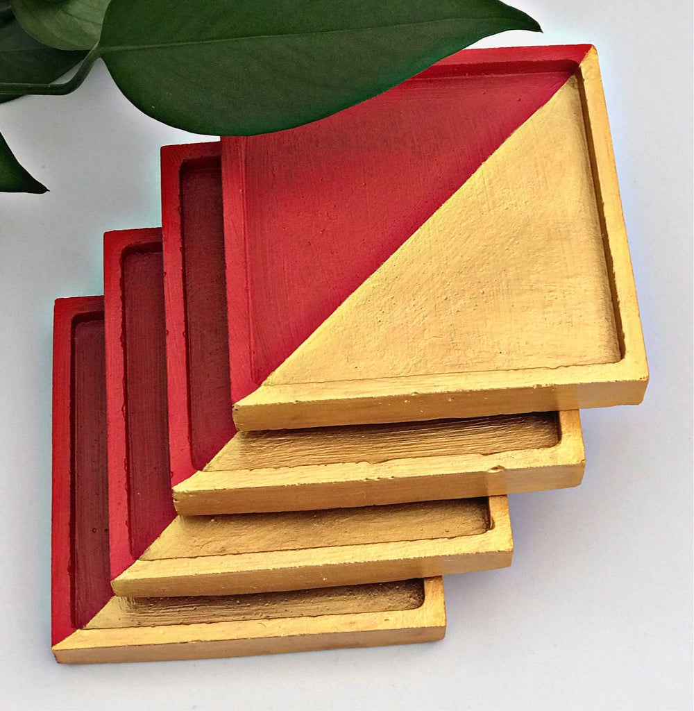 This listing is for: (Four) Pcs Red & Gold Concrete Square Coasters