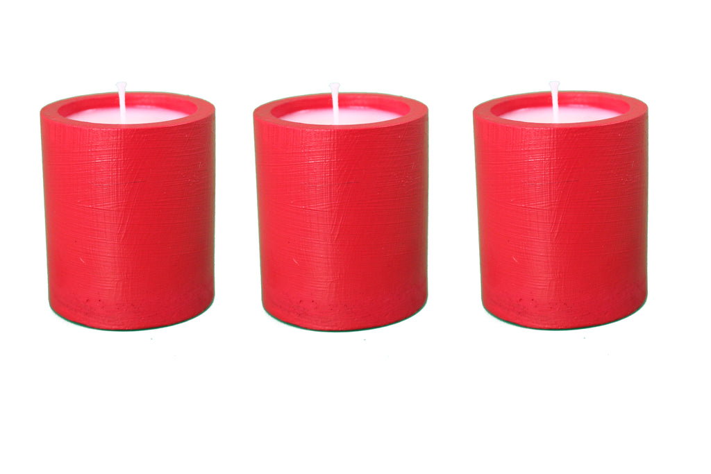 These scented candle set come in beautiful handmade painted Red concrete cylinders. Perfect for relaxing evenings and or as gift set. 3 pcs Christmas Spice Scented Candles with 1Pc Red Tray.