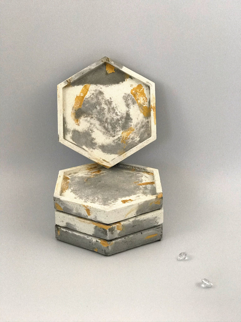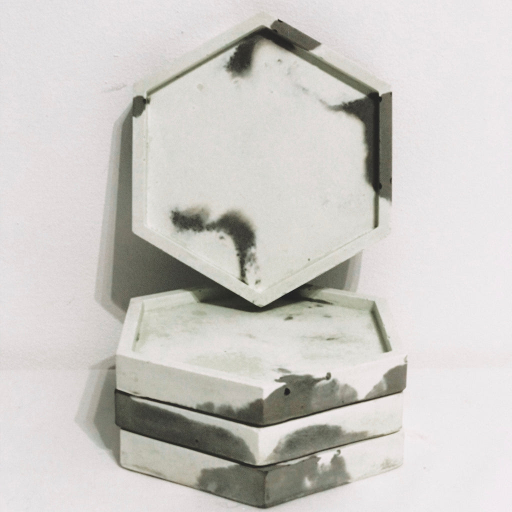 This listing is for: (Four) Pcs Concrete Marble Effect Hexagon Coasters