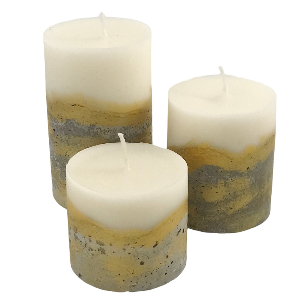 Mixed Soy Wax Gold Concrete scented Pillar Candle - Industrial - Unique Home Decor