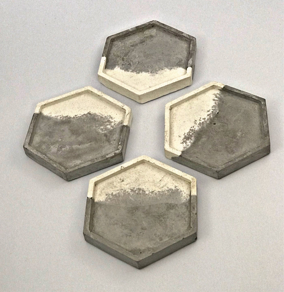 This listing is for: (Four) Pcs Concrete Hexagon Coasters