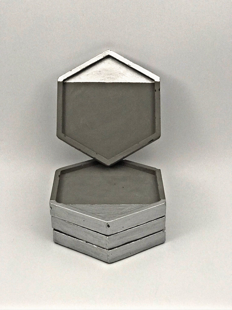 This listing is for: (Four) Pcs Concrete Hexagon Coasters