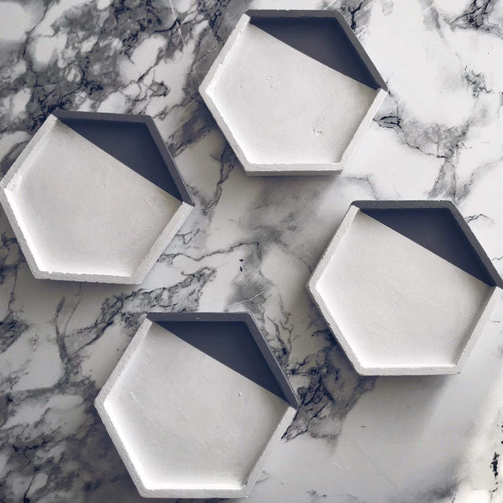 This listing is for: (Four) Pcs Concrete Hexagon Coasters