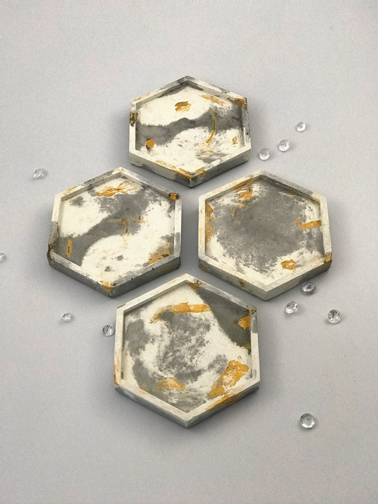 4pcs set Grey White Gold Marble Effect Hexagon Concrete Coasters